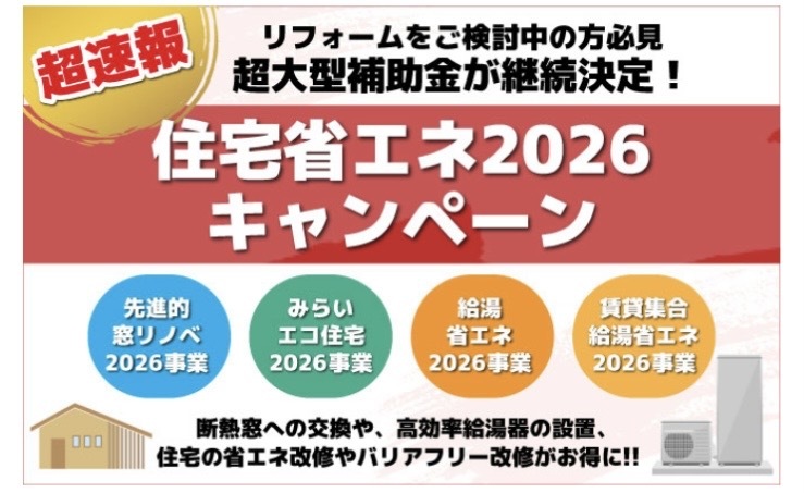 継続決定!住宅省エネキャンペーン2026年‼️